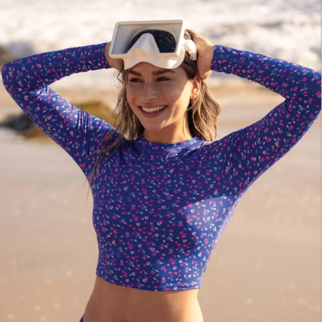 What’s the key to feeling easy, breezy, and bold while you’re out on the open water? Our Kiko rashguard, of course. Designed with raglan long sleeves and sleek flatlock seams, the playfully patterned Kiko features a cropped hem and crew neck that feel distinctly fresh and youthful.