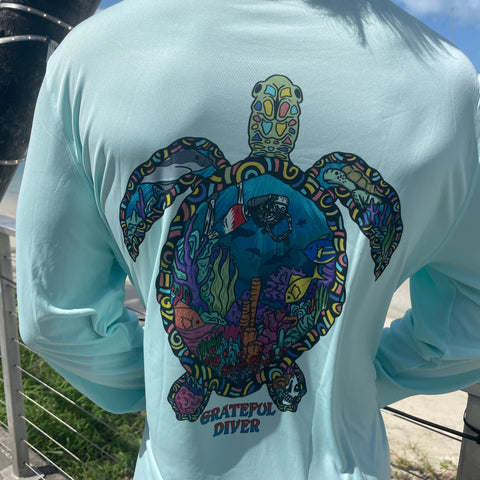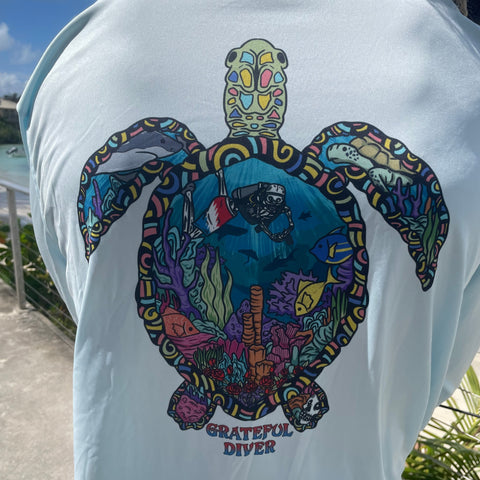 Make a splash in the Grateful Diver Psychedelic Turtle UV dive shirt! Just like the ever-changing hues of the sea, this performance shirt reflects the beauty and mystery of the underwater world—while keeping you protected and feeling great.